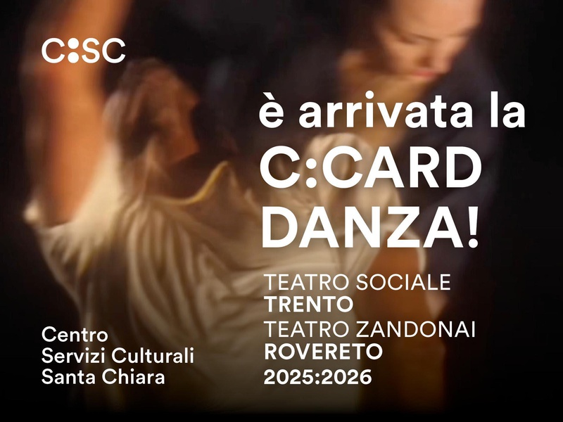 La card include 6 ingressi a scelta tra i seguenti titoli:Trento - Teatro Sociale:DREAMERS - 13 e 14 novembre 2025THIS IS A PREMIERE - 29 e 30 novembre 2025CENERENTOLA - 30, 31 gennaio e 1 febbraio 2026THE WALL_DANCE TRIBUTE - 5, 6, 7 febbraio 2026Rovereto - Teatro Zandonai: