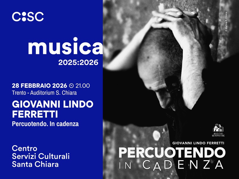 A Trento presenterà il suo nuovo spettacolo “Percuotendo. In cadenza”, un viaggio tra musica e parola, dove il racconto personale si intreccia con suoni, ritmo e poesia.